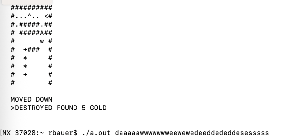 The following game is an experiment in developing a game that could have been played on a mainframe in the 1960s, controlled only from the shell. In other words, there were no internal game queries for input. The inputs are defined in advance.