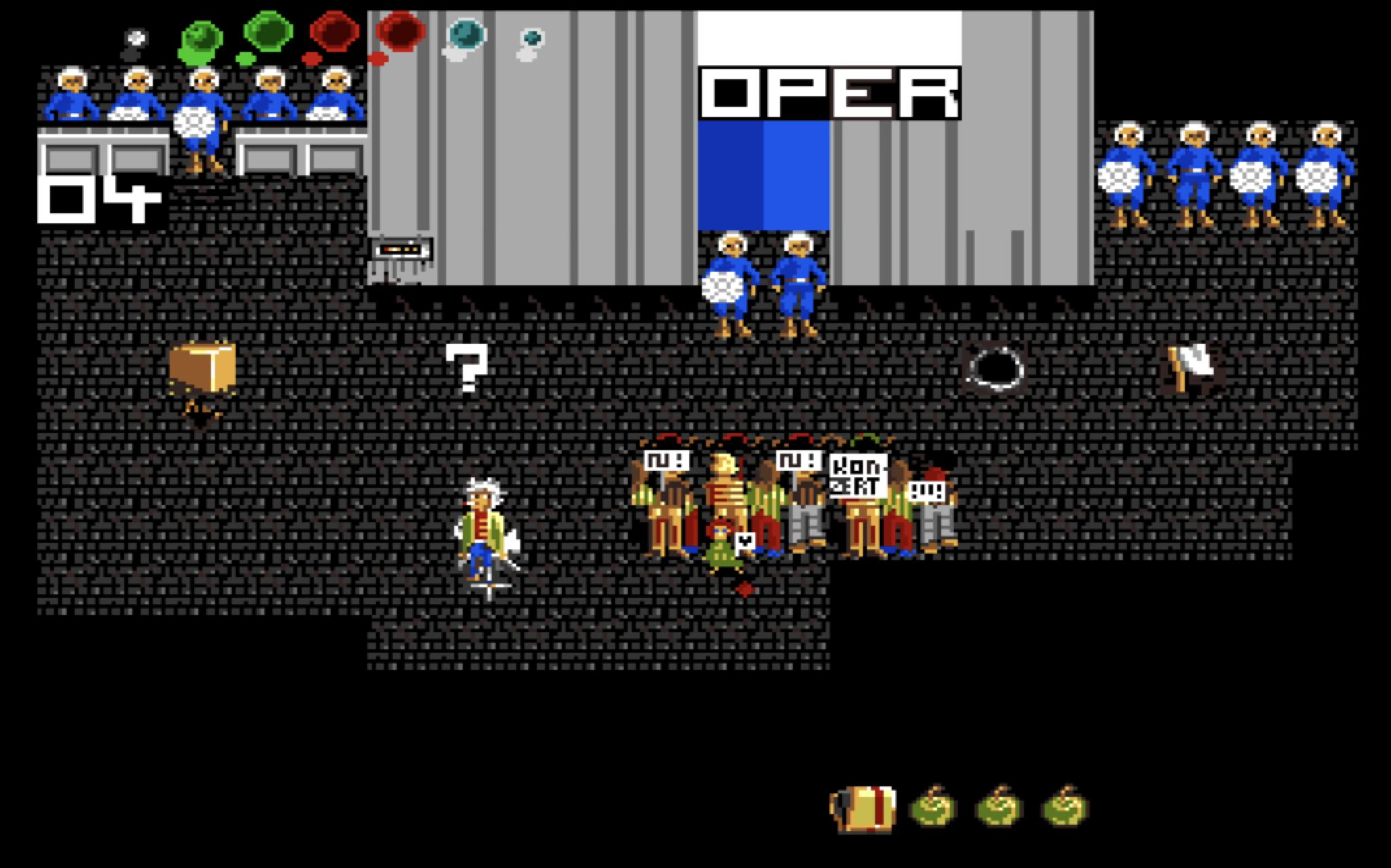 • die farben der objekte sind schwarz oder grau. der avatar ist gelb