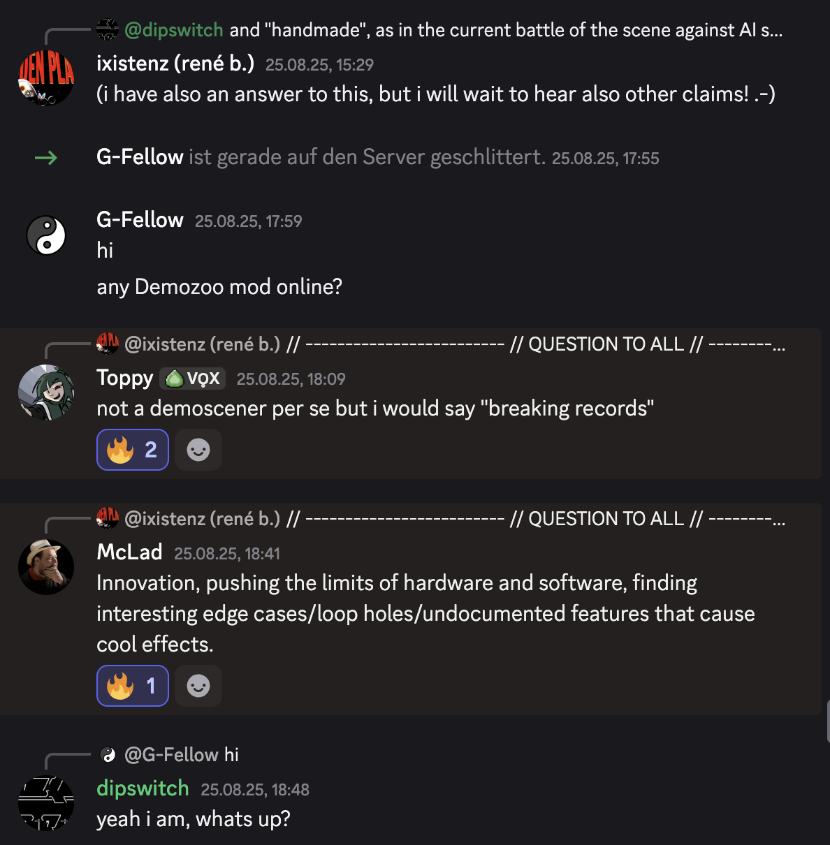 Und so ist es dann konkret schwierig selbst heute beim Formulieren von politischen Textenteilen. Es gibt da etwas Kulturelles in der Sozialisierung, das sagt: „Das geht zuweit. Das gehört nicht hier hin. Hier geht es um Fun“.