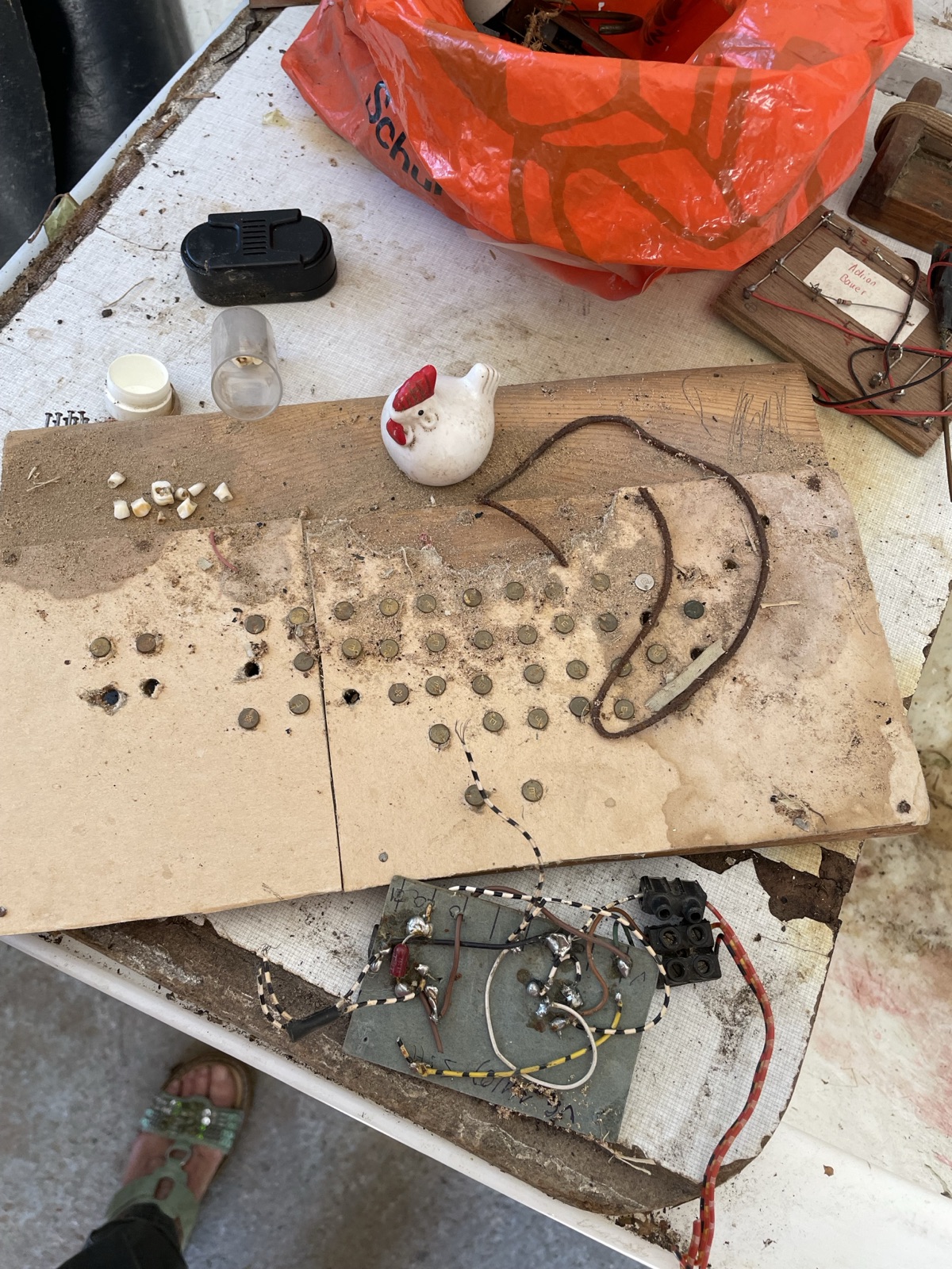 Das scheint der Versuch gewesen zu sein: 1/1/0 abzubilden. Das Gelöte ist „brute“ .-) Hoffen wir noch mehr davon hat überlebt. Vermutlich sollte man eine Person kreieren, die das damals gemacht hat und es dann ausstellen .-) Zusammen mit anderen Versuchen, sich seinen eigenen Computer zu basteln!
