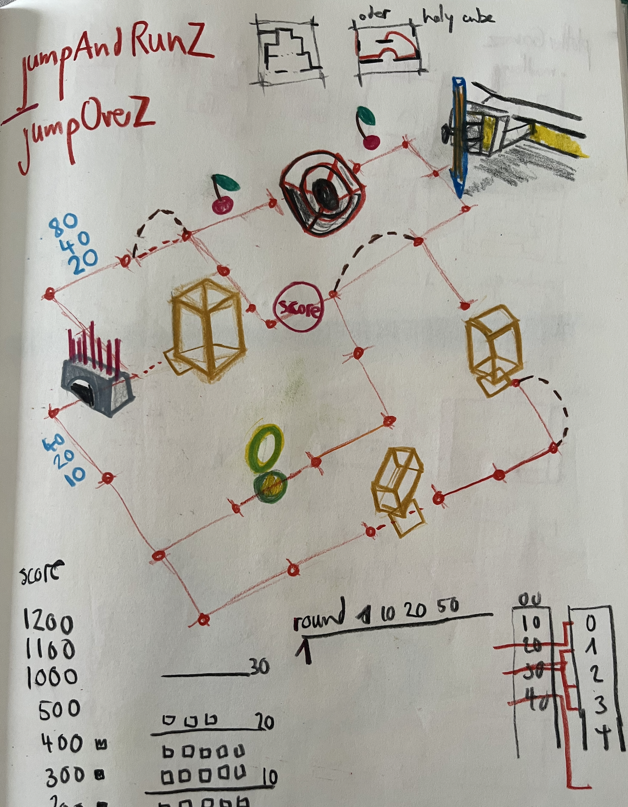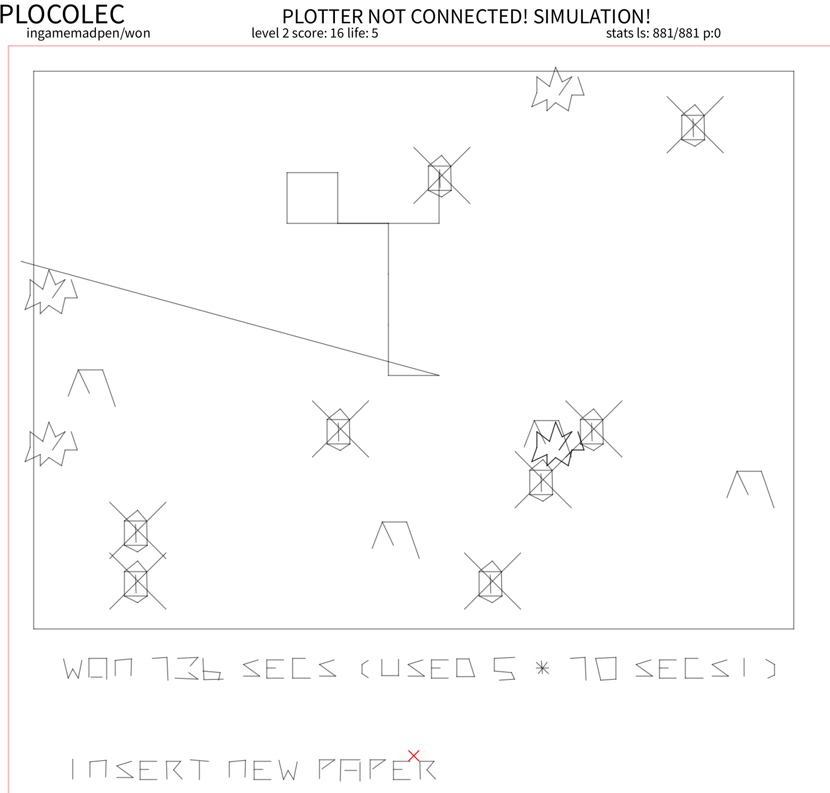 „InTheAir“ ist ein direktes JumpAndRun im PlotterRaum. Der Spieler wird durch eine Labyrinth geführt und kann nur Springen. Dadurch wird wie bei MadPen eine gewisse Actionhaftigkeit erzeugt (Es gibt ja keine Spielmechaniken, wo jemand anders direkt den Spieler in Echtzeit treiben könnte). Es gibt auf dem Weg Abgründe, die man überspringen muss. Dabei muss der Spieler quasi wirklich springen mit dem Stift über die Hintergründe. Interessant könnte dieses Spiel auch sein, weil man konkrete Hindernisse aufs Papier stellen könnte, die umfallen, wenn man* halt nicht korrekt springt. Unten angefügt sind einige Möglichkeiten etwa den Spielstand darzustellen. Es handelt sich um klassische Lösungen etwa aus dem Brettspiel.