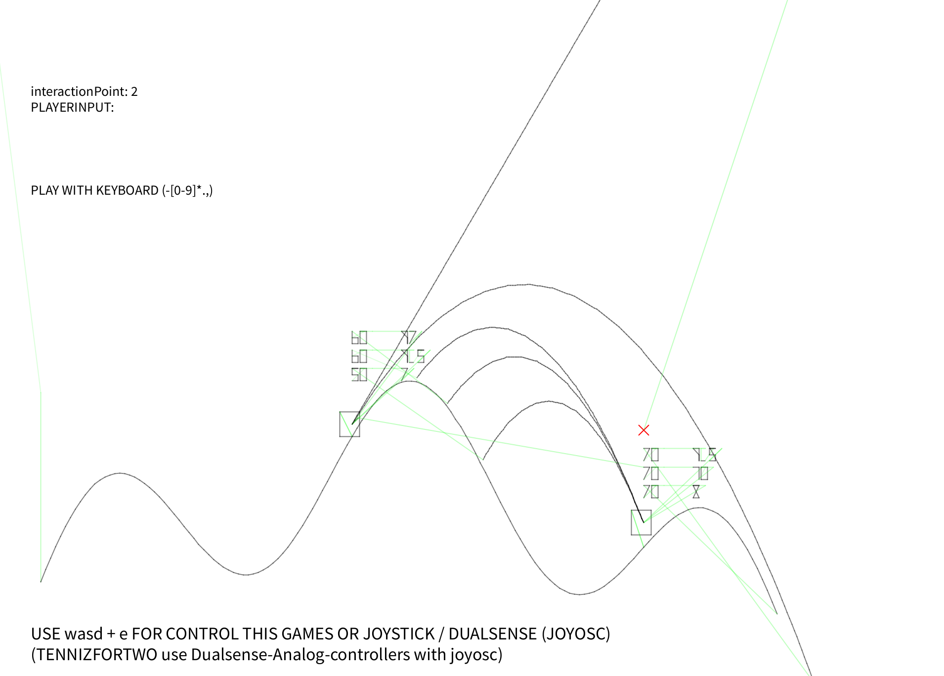 Es ist interessant, das Spiel wieder zu spielen in seiner ‚Urfassung‘. Also in der Fassung bevor es zu einem Zerstörungsspiel von Hintergrund wurde mit einer ganz anderen Programmierung (Konkretes Zerstören von Arrayinhalten). Hier geht es um simple Formeln und Parametern. Das ist der Elearning-Teil des Spiels. Es ist ein Spiel (siehe Interview Luehrmann), das die Realität von Ballistischen Waffen ins Spiel bringt. Dabei ist es nicht wie Tennis4Two ein verkapptes Atomwaffenabwehrsystem oder verwendete Technik davon, sondern ältere Technik. Wenn auch das Orginal im Weltall spielt und dann wieder sehr viel mit Atomwaffen zu tun hat.