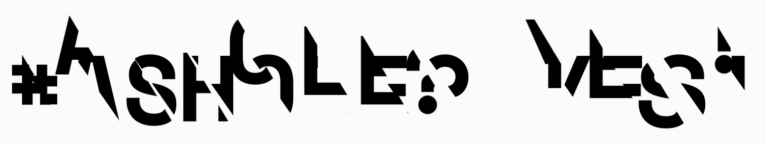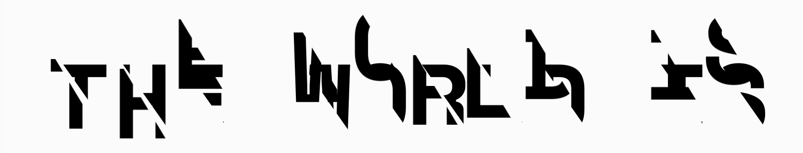 Diese Designtechnik arbeitet damit, dass es eine Transformationsmatrix (Im Scrollingtext nur ein Cut und eine Verschiebung) gibt, die aus Bekanntem unbekannt Bekanntes macht. Die Schrift ist dabei fast noch lesbar, wenn man weiss, dass es sich um Schrift handelt (TH deutet darauf hin). Der Rest des Textes könnte irgendwas sein mit einem „R“ darin.