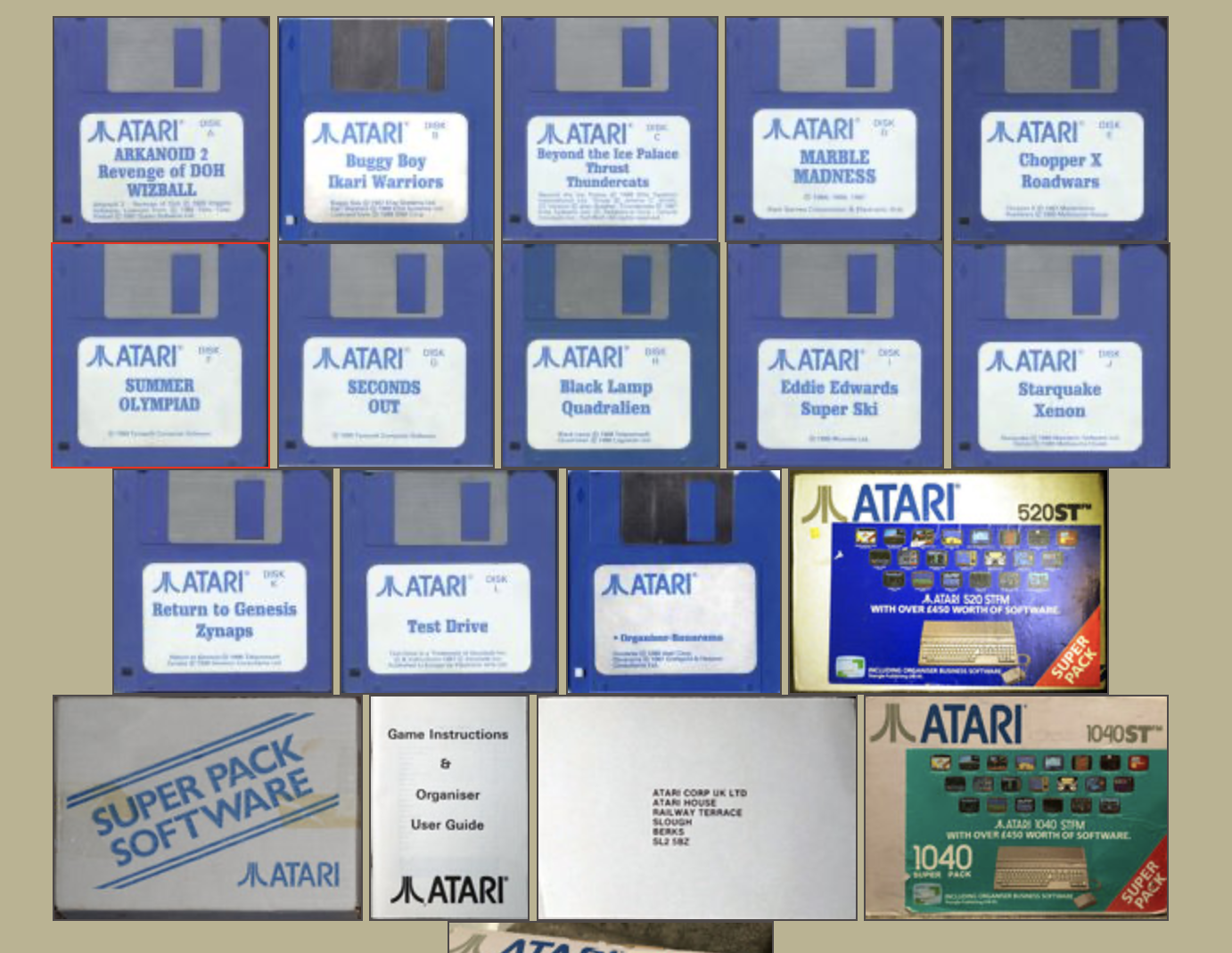 Computerspiele – vorallem professionelle – waren schon immer teuer für die Käufer und so auch im Homecomputerbereich. Bald gab es acuh Bundles, die man dazu kaufen konnte. Meist wurden dabei mässige und einige gute Spiele gebandelt. Erinnert inhaltlich an das spätere Bundlen von Hypotheken, was zum Crash 2007/8 geführt hat oder den Humble-Bundles heute bei Steam. Allerdings wurden hier nicht einige Spiele zusammengepackt sondern mehrheitlich 10+. Und dies lohnte sich dann tatsächlich. Dabei zeigt ein Youtube-Video auch auf, wie es fürs Promoting des Atari ST benutzt wurde.