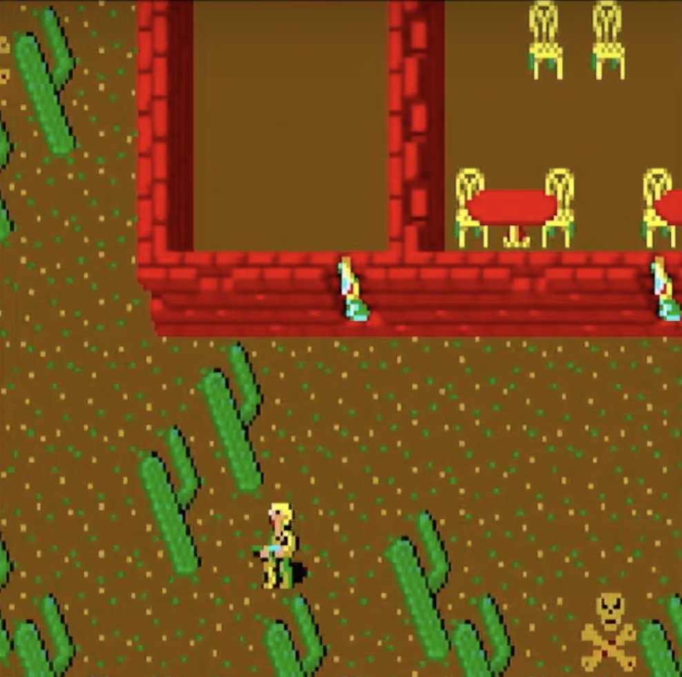 Hier gibt es nun auch begehbare Hintergründe. Die Grafik ist viel detailierter und dadurch ‚realistischer‘ oder besser ‚analoger‘. Das Spiel wird dadurch aber auch schwerer lesbar. Bleibt dennoch im Raster.