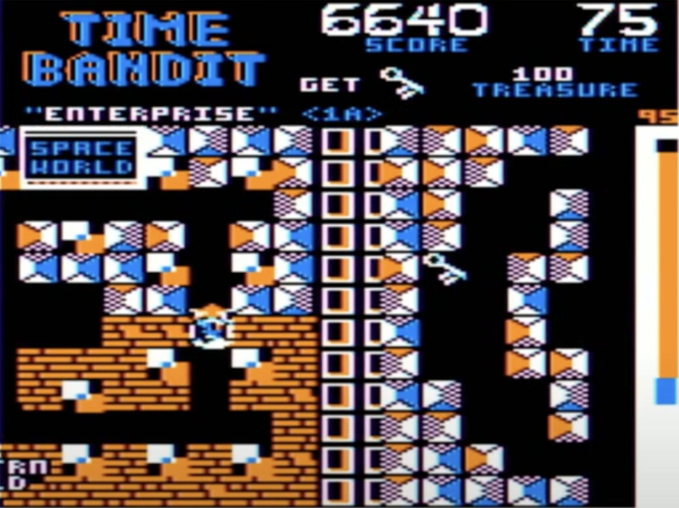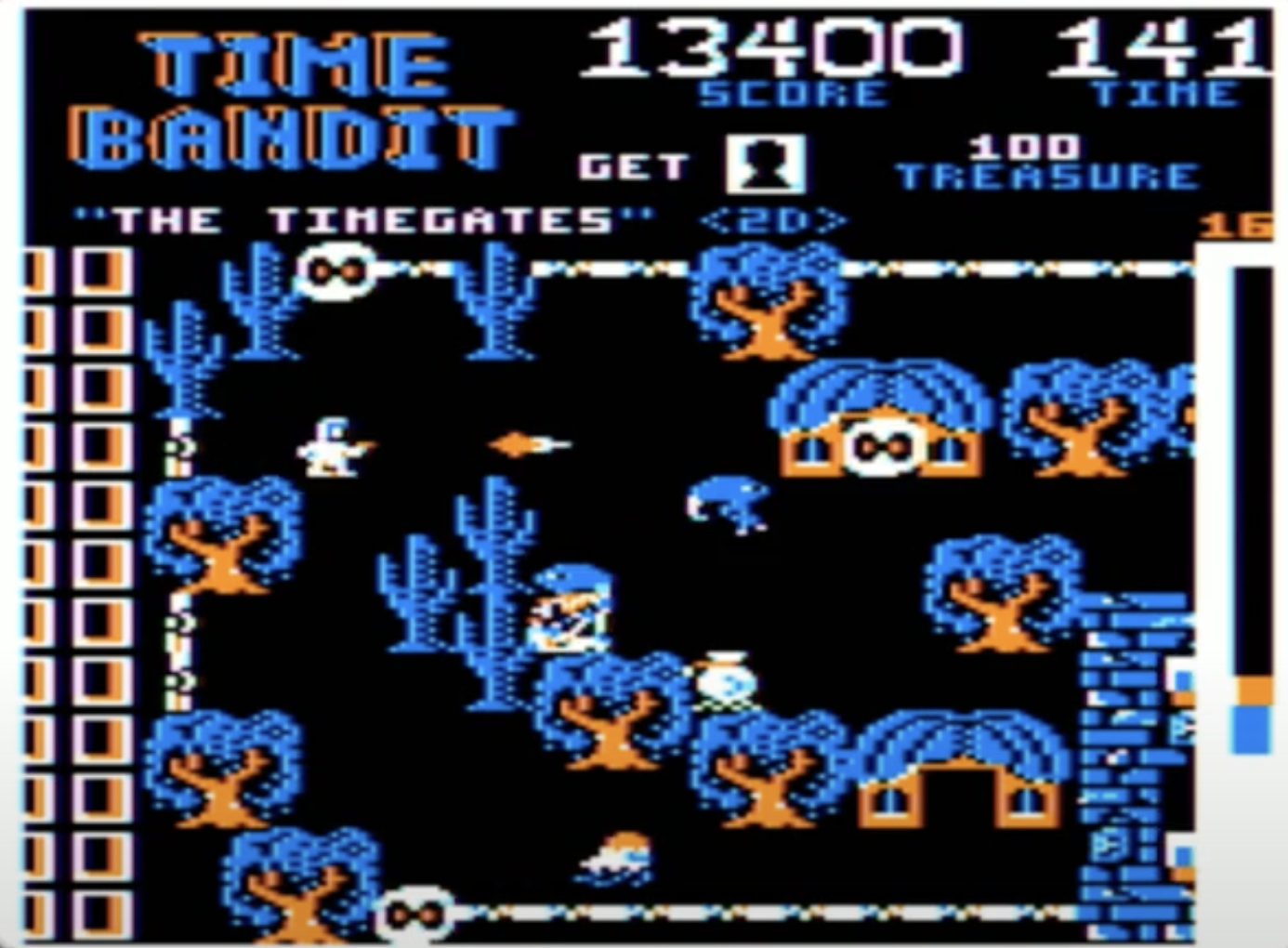 Zeitzeuge: TimeBandit war damals ungemein faszinierend. Ich sah es das erste Mal an einer Ausstellung (da gab es so einen Consolen/Computerecken vgl auch CHLudens Interview mit Heubi/Kohler) im Technorama auf einem Atari ST in Winterthur mit meinen Geschwistern und wir waren fasziniert. Dieser heute krude Mix. Das Spiel war damals nicht einfach lesbar wie später Gauntlet. Die Zeichen stammten nicht aus einer Welt sondern waren gemixed. Es ging durch seltsame Welten mit unterschiedlichsten Settings und das scheinbar gleichzeitig und nicht als Entwicklungsgeschichte wie anderen Spielen. Auch das Ziel des Spiels war unklar – es schien offen mit Übersichtsleveln und dann einzelnen Welten darin. Irgendwie. Und alles im selben Look.