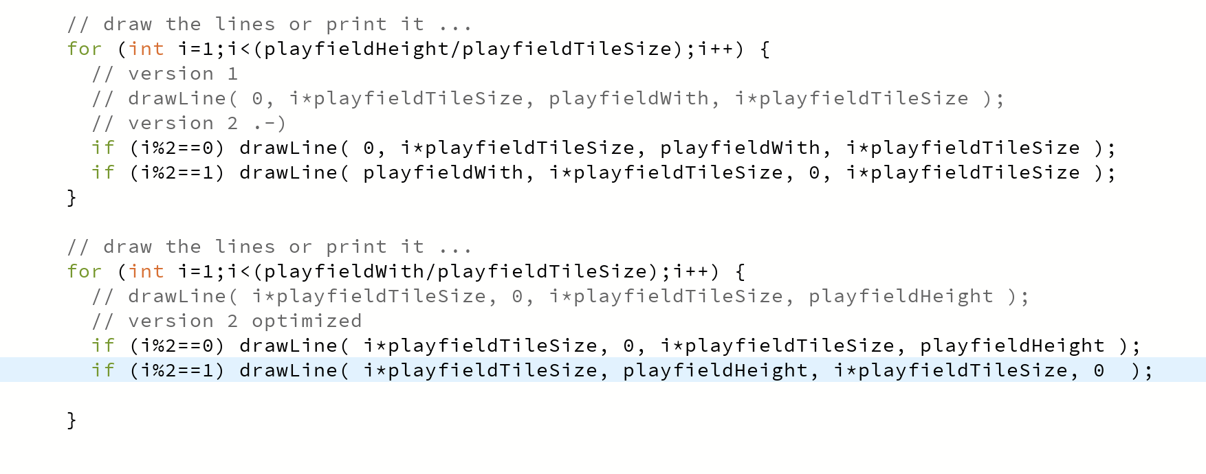 Auch das Zeichnen eines Grids kann optimiert werden. Das spielt etwa bei Vektorscreens auch eine Rolle, bei CRTs nicht. Immer Gerastert: Links,Rechts und so fort.