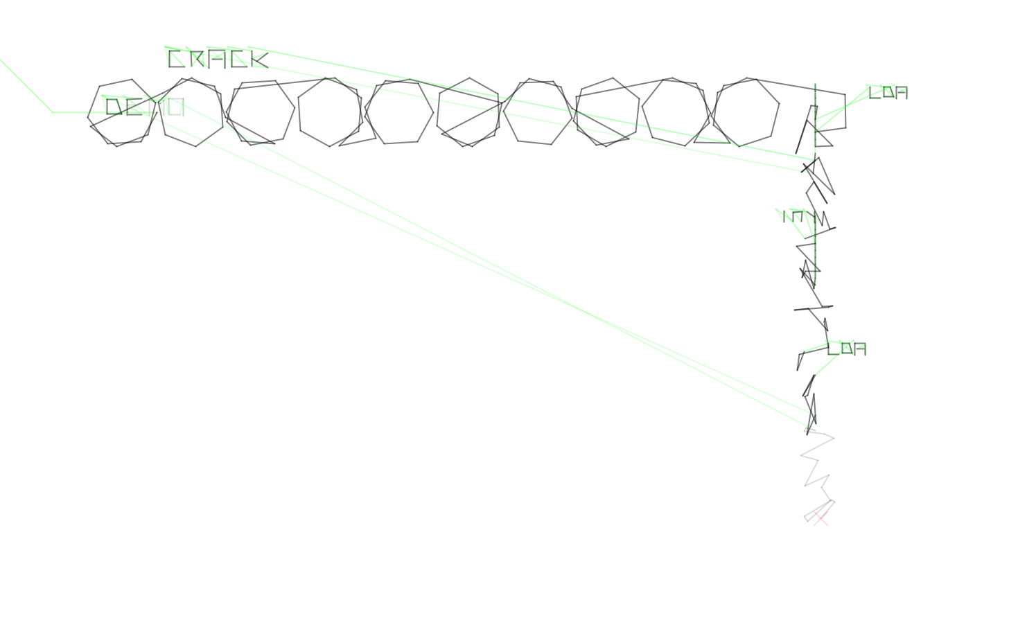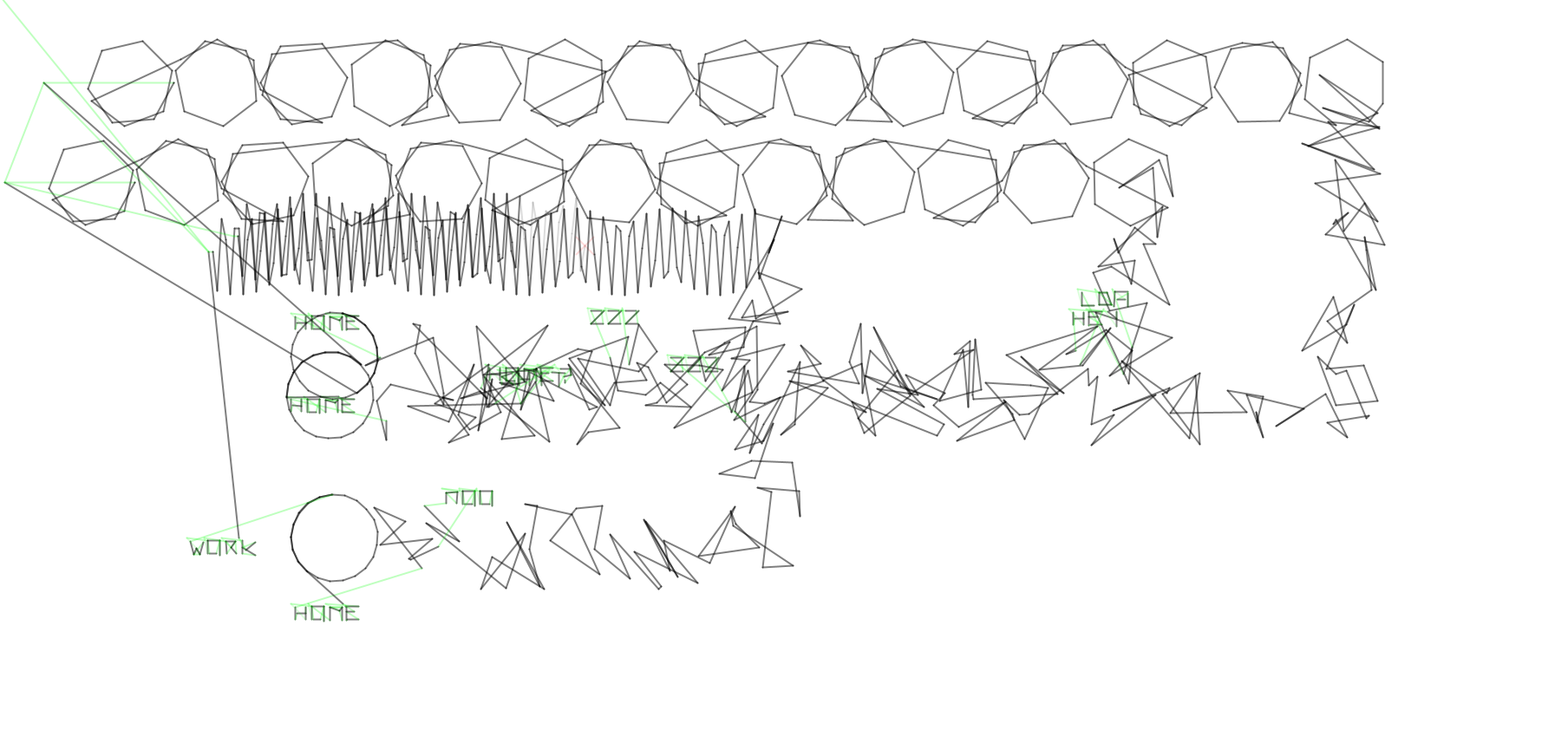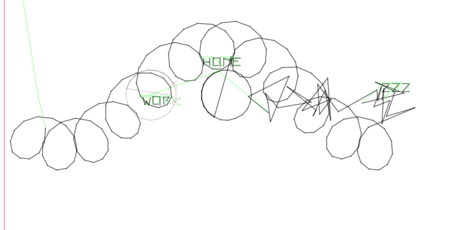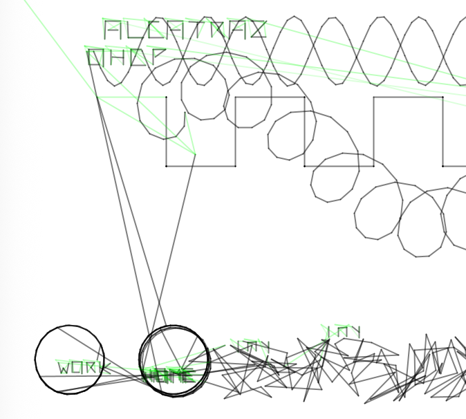 Dabei kam die Idee auf, das normale Setting von Demos zu verlassen und die Abstraktion einer Plotterdemo oder Demos allgemein zu nehmen und derselben Bildsprache weiterzuführen. Die Idee wurde auch schon für ein PlotterGame entwickelt. Anders gesagt wie wäre es, wenn das ganze eben ein Trail ist? Denn Plotter proudzieren immer einen Trail (wie auch Vectorscreens .-).