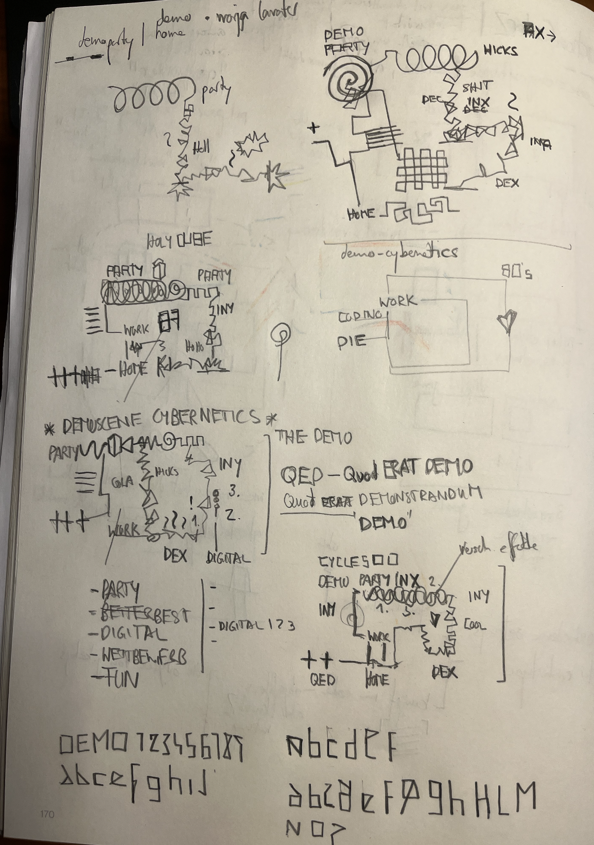 Die letzten Skizzen im Prozess. Hier steht nun mehr die Demoscene-Kybernetik im Vordergrund.