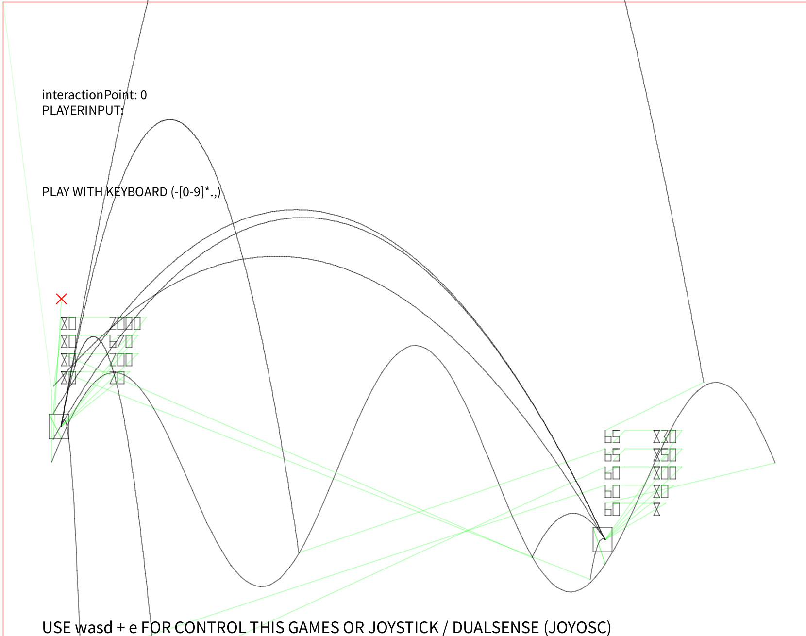 Plotshot hat eine eigene Aesthetik. Durch die hohe Auflösung im Vergleich zu 8Bit Screens (vgl. dazu Plato Systems) ist das Ganze sehr filigran. Die Art der Objekte ist bis auf die Pots (sollten sie rund sein?) eigentlich gleich. Es sind immer Derivate einer 2er Potenz. Sowohl die Hügel sind so konstruiert, wie auch letztlich die Flugkurven. Dadurch besteht fast das ganze Spielfeld aus einer Art visuellen Regel – etwa Abgeleitetes von (x-a)^2+b. Dies wird noch unterstützt, da es 3 Ausgangspunkte gibt dieser angewandten Formeln: Die Landschaft links und die zwei „Spielerkananonen“, aus denen dann viele willkürliche Kurven ’spriessen‘. Dabei gilt auch hier wieder eine sich annähernde Künstlichkeit: Es wird optimiert, dadurch entstehen zwangsläufig eine Art ‚parallele‘ Formen oder besser Formen, die sich aneinander anlehnen.