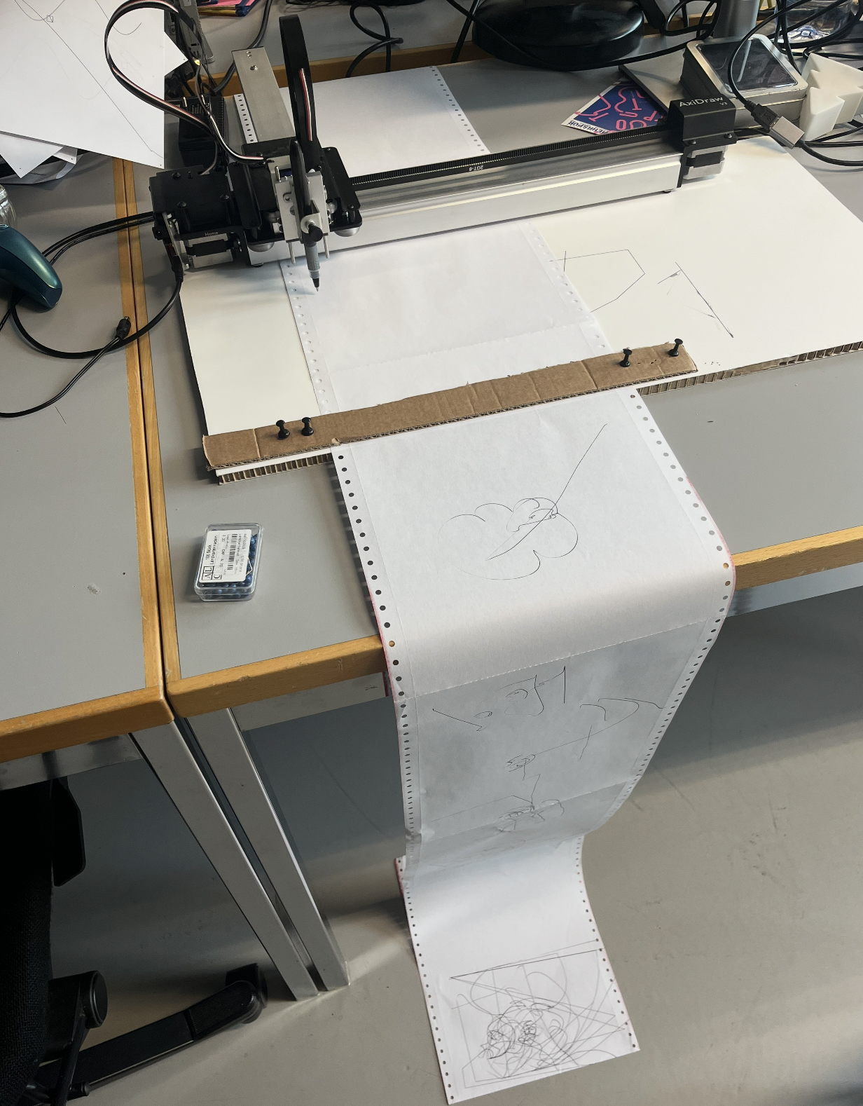Das Endlospapier scheint für die Plotarcade gut zu funktionieren. Es ist genug Reissbeständig, so dass man es in der Anordnung ohne Probleme ziehen kann.