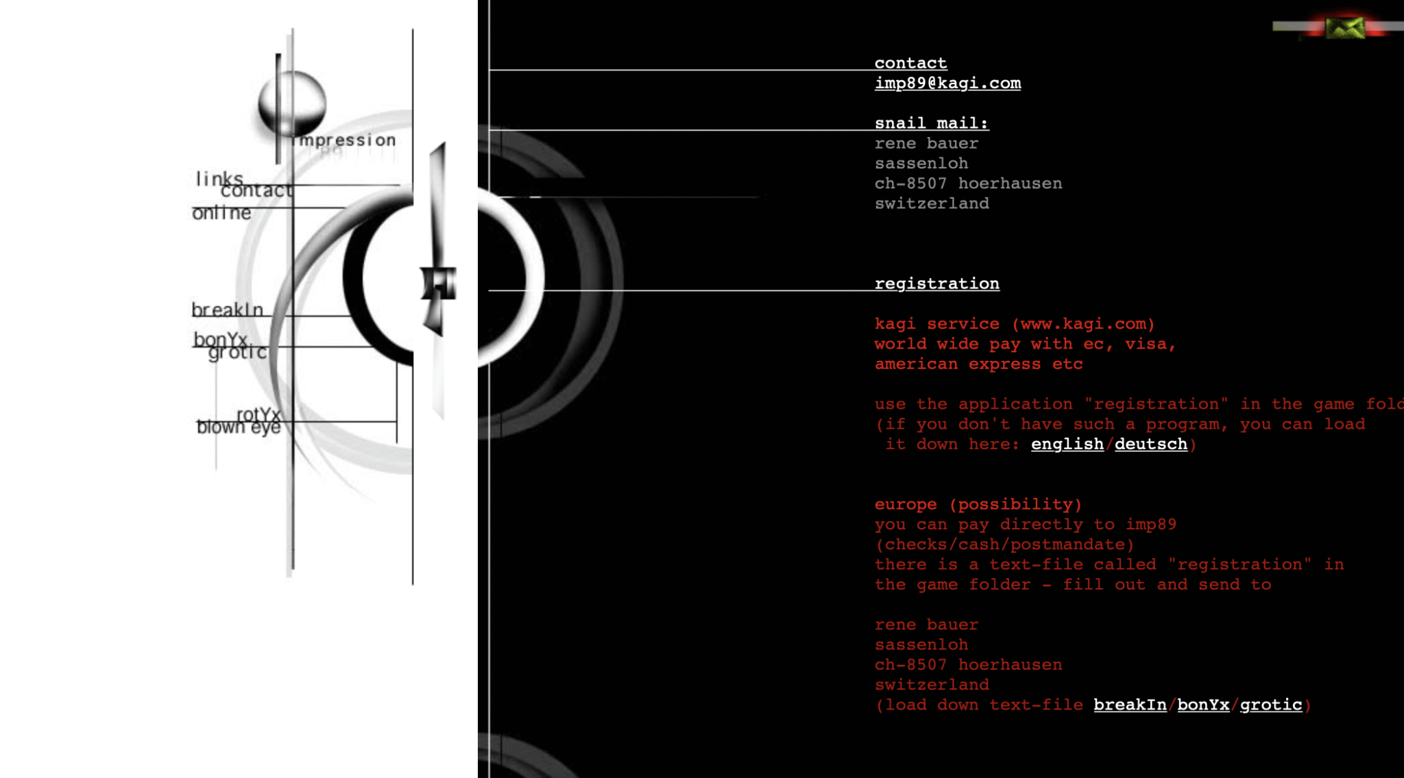 Eine späte Version der Webseite sah so aus (1998?).