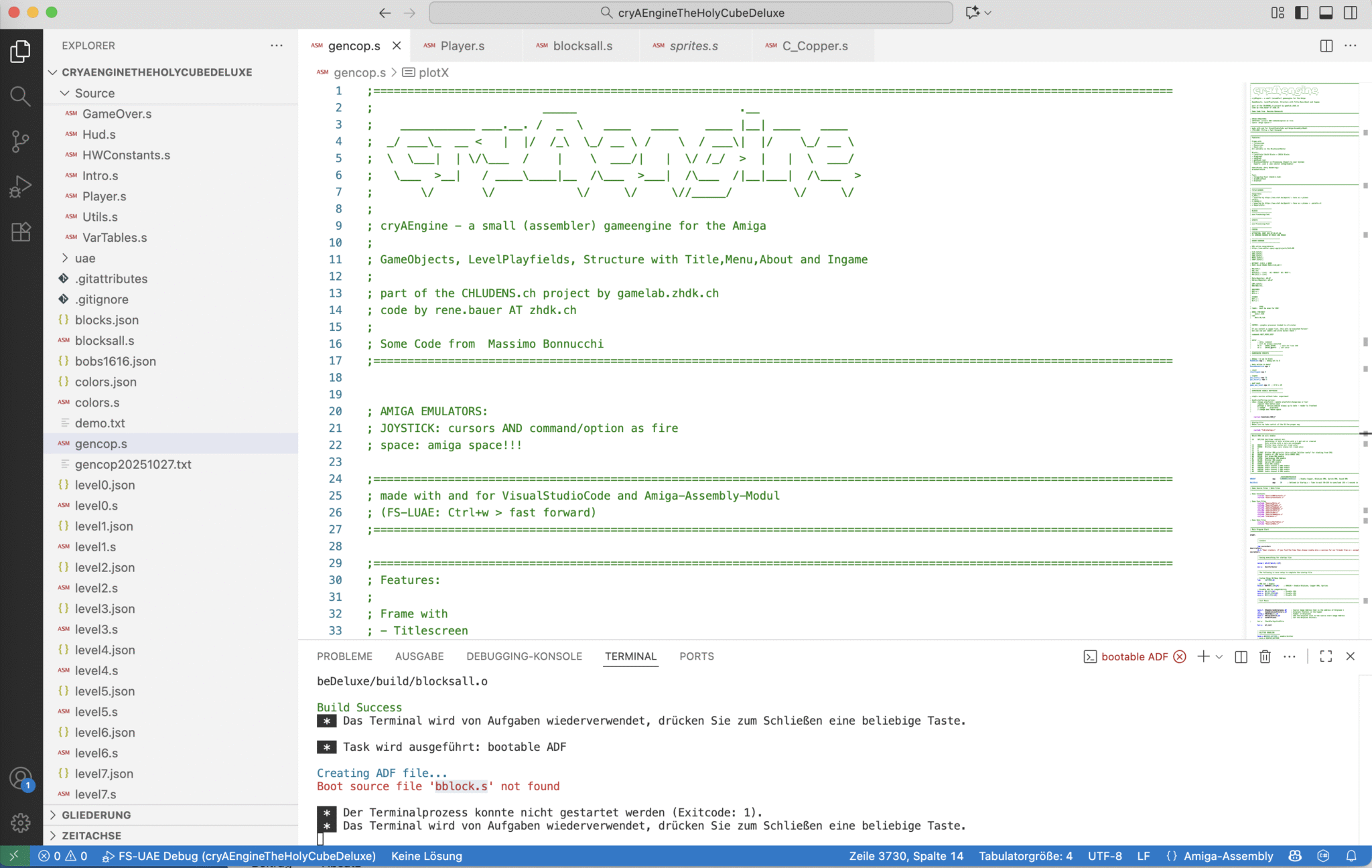 Für das Spiel wurde eine eigene GameEngine entwickelt, die CryAEngine in Assembler. Folgendes File enthält alle Files zur Erstellung des Games mit VisualCode & dem Plugin „Amiga Assembly“.
