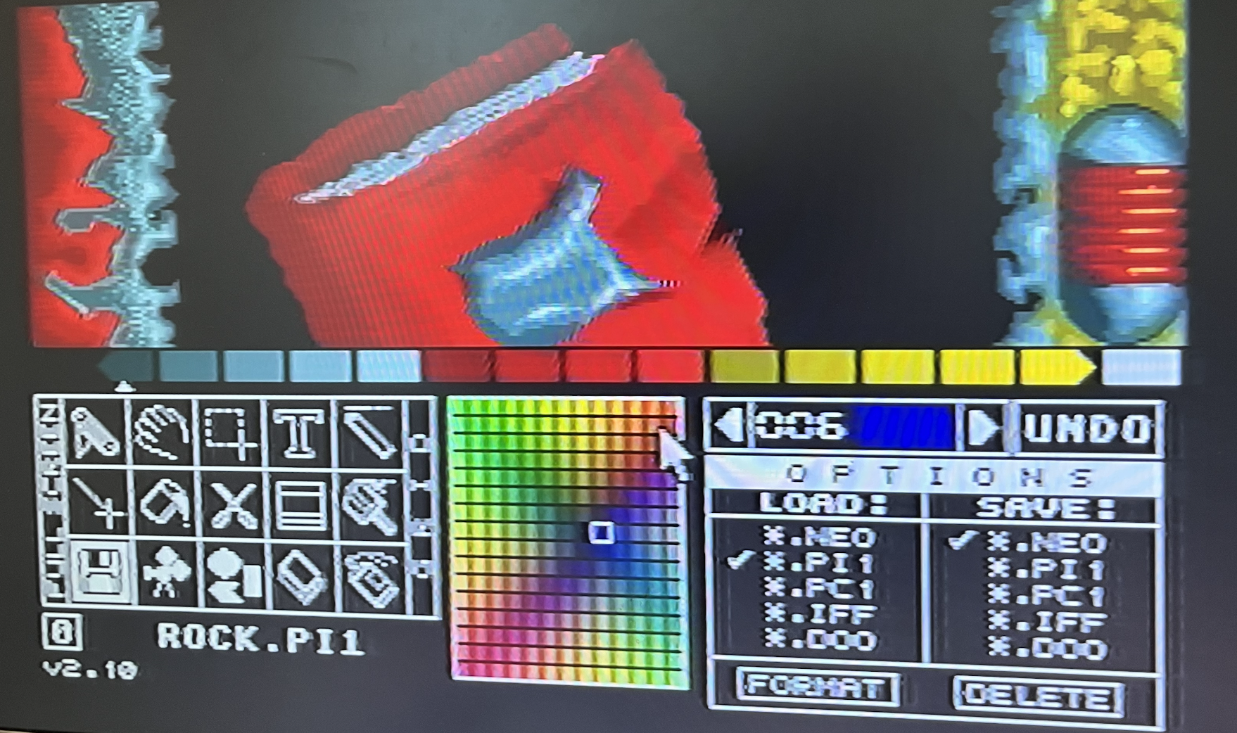 Das Tool auf dem Atari ST, war das mitgelieferte Neochrome (Es gab kein Painter). Als Alternative war noch Degas Elite vorhanden.