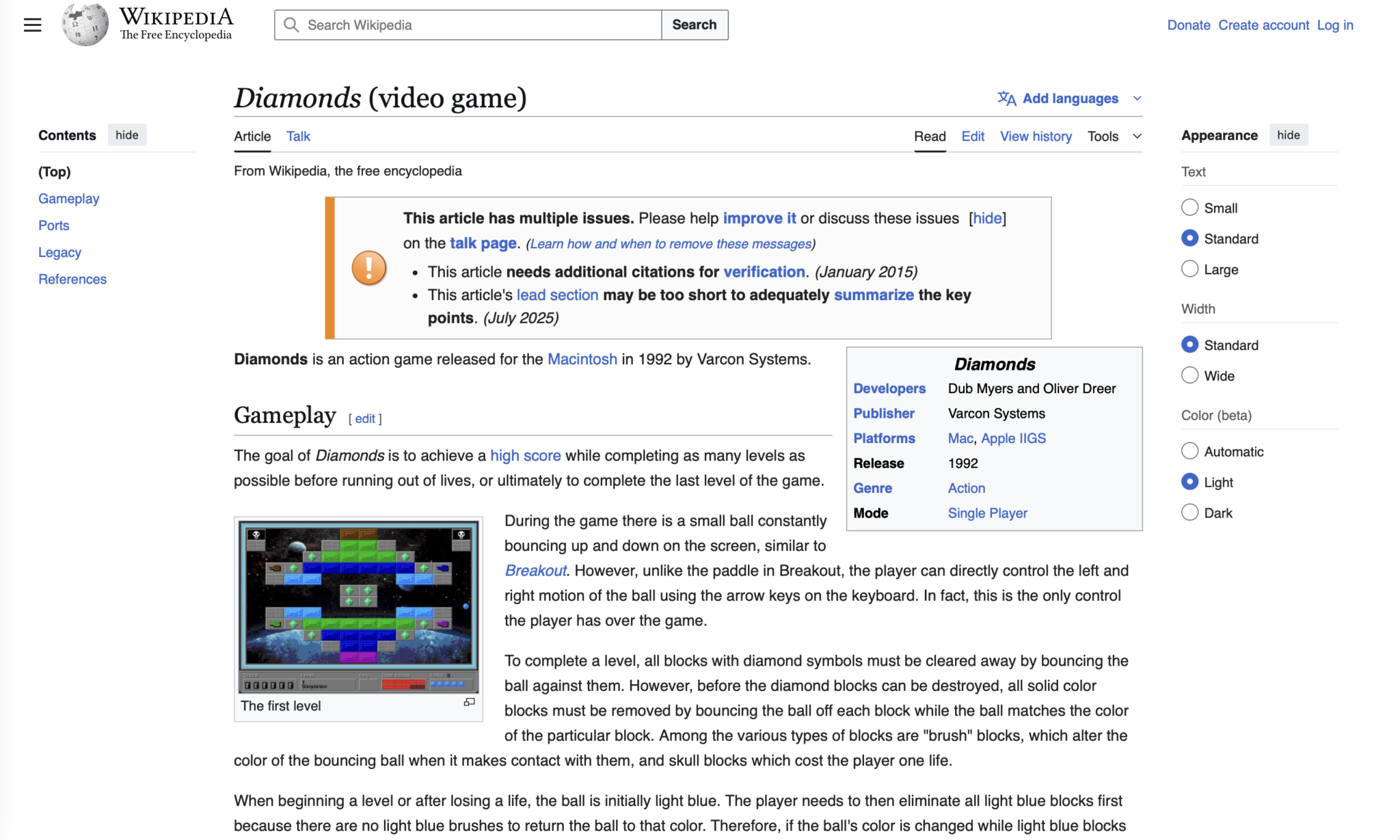wikipedia 2004+ https://en.wikipedia.org/wiki/Diamonds_(video_game)