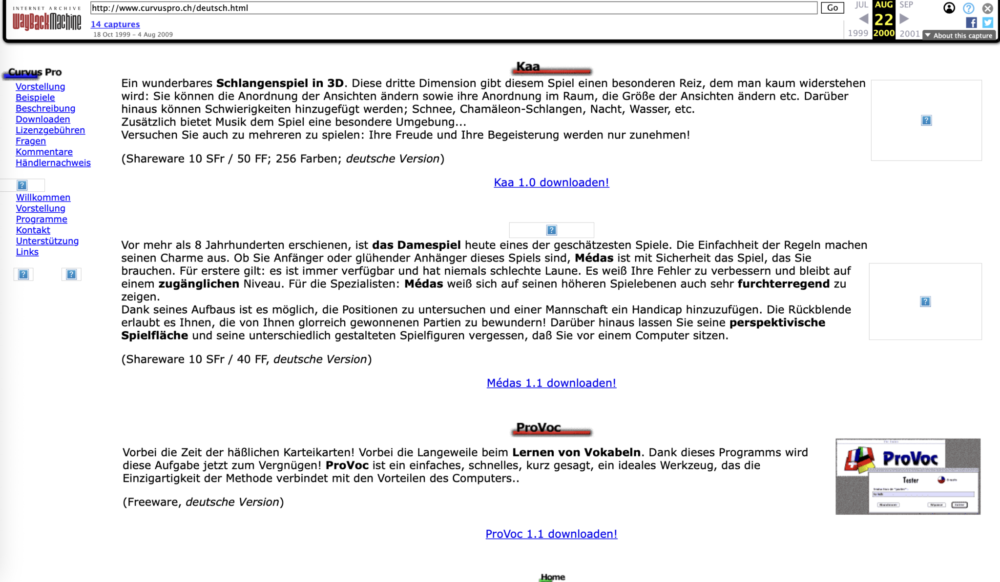 Die Webseites geben heute nicht mehr viel her, da mehrheitlich das meiste verloren gegangen ist. Dennoch zeigt es auf, was die Spannbreite von Webrepräsentation war. Einige haben ihre Repräsentation auch schon in Shareverkaufsplatformen wie Kagi.com integriert. Leider sind auch diese nicht mehr findbar.